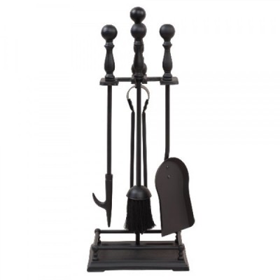 Каминный набор D15016BK выполнен из высококачественного металла черного цвета, обеспечивающим легкость и высокую прочность всех изделий. Набор представляет собой удобную подставку и четыре предмета: багор для того, чтобы ворошить поленья, щипцов, для того чтобы собирать упавшие угли, совка и щетки для собирания золы и мелкого мусора, а также удобной подставки для хранения всех инструментов. Все элементы набора обладают изящными формами, а также ручками для удобного использования и размещения на подставке. Комплект инструментов для камина отличается отличной функциональностью, компактностью, доступной ценой и небольшим весом.