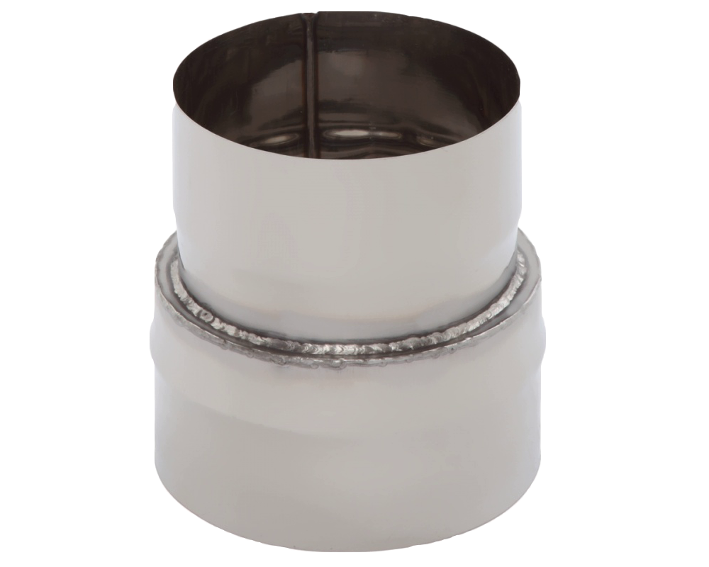Переходник служит для соединения в одну систему дымохода одностенных труб разного диаметра. Изготовлен из листовой нержавеющей стали, устойчивой к коррозии, агрессивным факторам внешней среды, повышенной влажности. Характеризуется высокой прочностью и долговечностью. Под воздействием высоких температур не деформируется, сохраняя плотность прилегания элементов системы. Монтируется просто, как и остальные части одностенного дымохода.