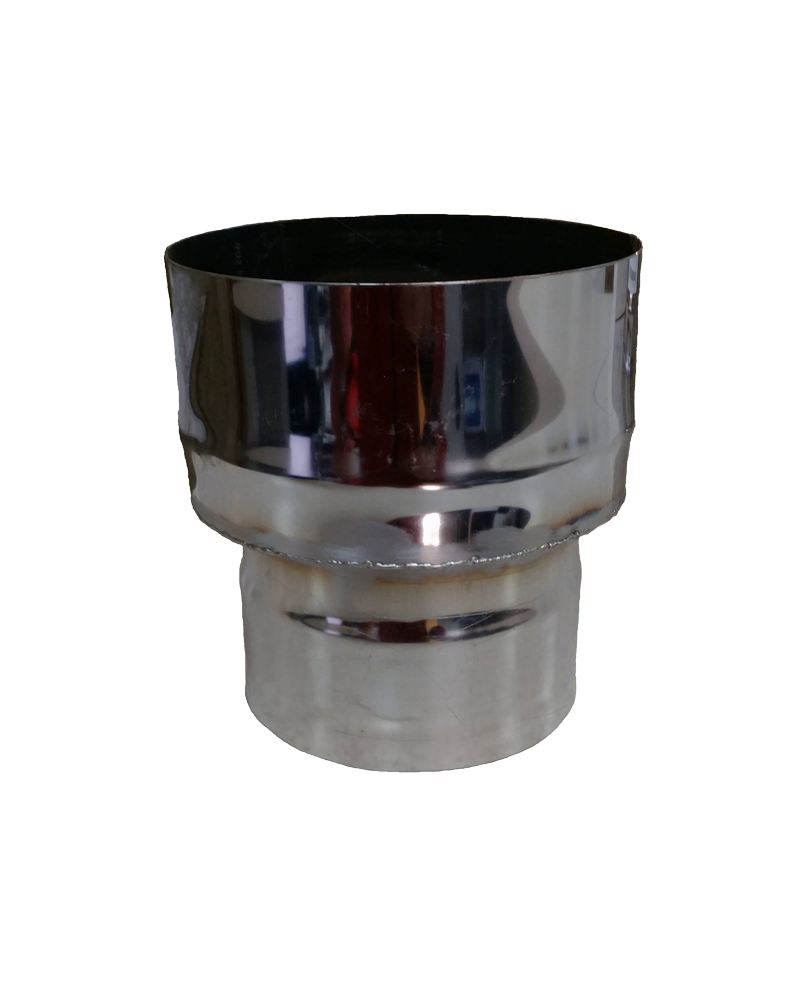 Переходник служит для соединения в одну систему дымохода одностенных труб разного диаметра. Изготовлен из листовой нержавеющей стали, устойчивой к коррозии, агрессивным факторам внешней среды, повышенной влажности. Характеризуется высокой прочностью и долговечностью. Под воздействием высоких температур не деформируется, сохраняя плотность прилегания элементов системы. Монтируется просто, как и остальные части одностенного дымохода.