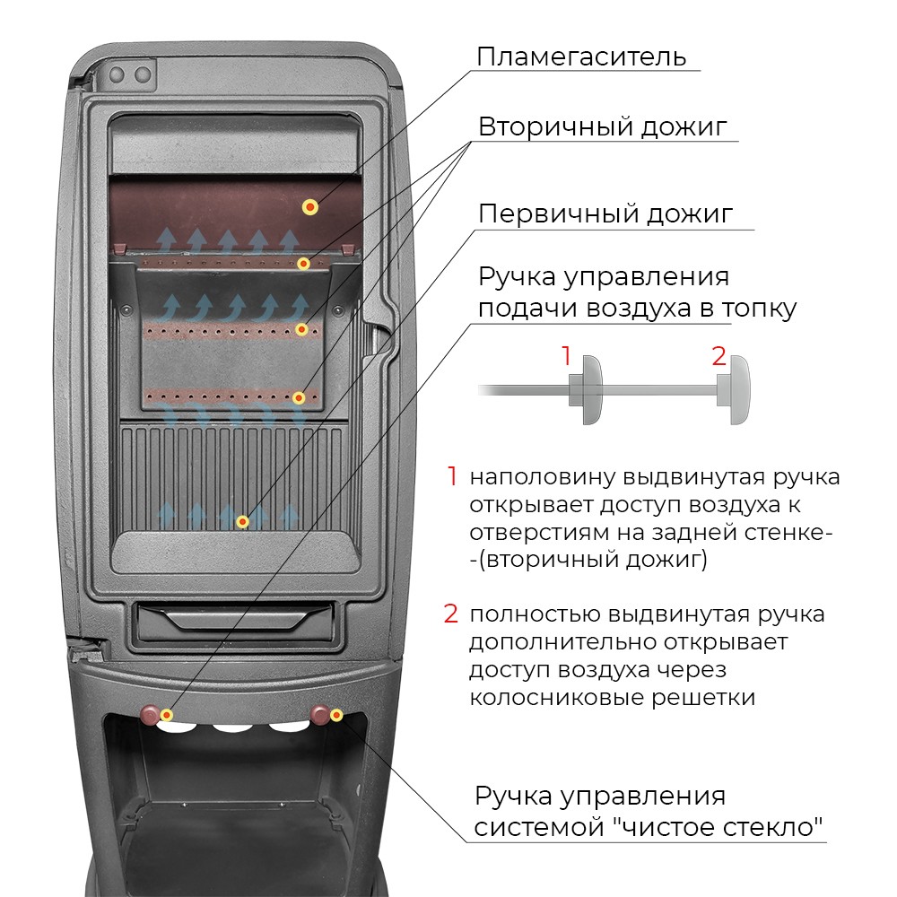 Печь-камин Эверест S7 имеет классический стиль, она подойдет и украсит любой интерьер загородного дома. Печь выполнена из чугуна высокого качества, не требует дополнительного фундамента для нее . Печь-камин Эверест S7 имеет удобную дверь для закладки дров , хороший обзор на пламя через стекло. Подача воздуха в топочную камеру осуществляется с помощью заслонки, что позволяет регулировать режим горения. Также имеется двойной дожиг газов повышающий КПД печи, и минимизирующий остатки продуктов горения.