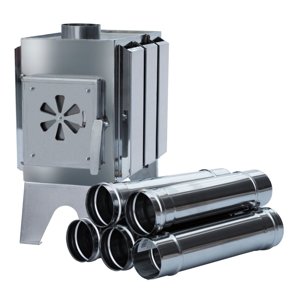 - Мобильность: обеспечивается легким весом печи, который составляет 6,7 кг без дымохода и 8,4 кг с дымоходом;